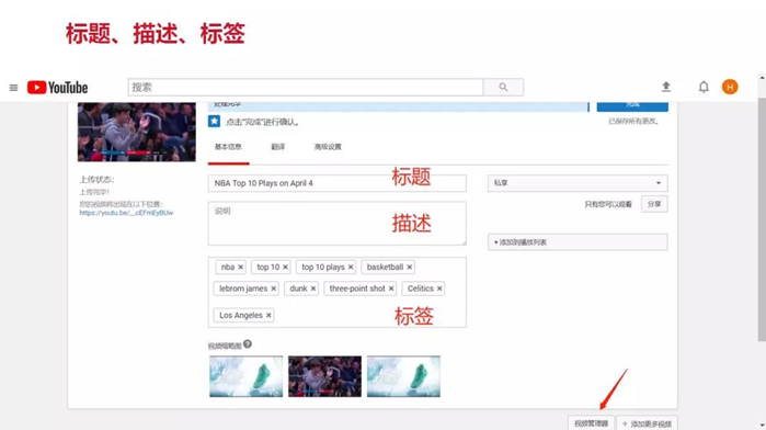 也可以推薦自己頻道內(nèi)的其他視頻,一樣的操作方法。