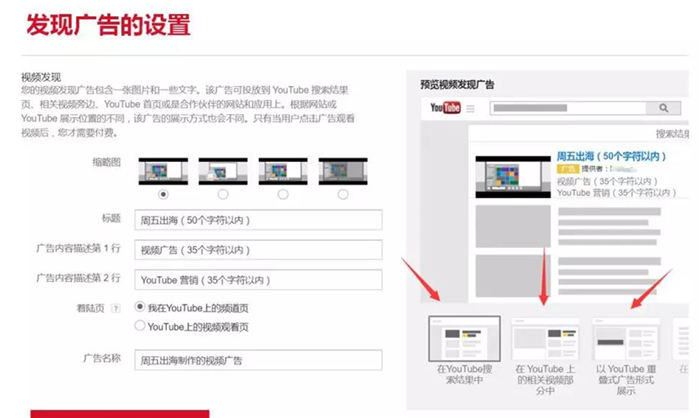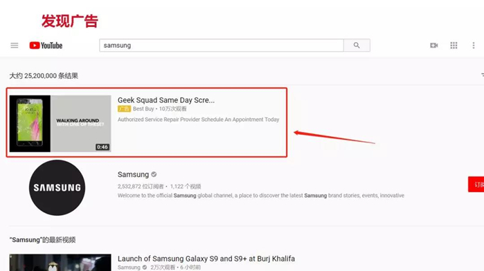 主要有兩個(gè)廣告版位,一個(gè)在搜索結(jié)果頁(yè)面第一條的位置。當(dāng)YouTube搜索關(guān)鍵字與你設(shè)置的關(guān)鍵字想匹配,廣告就會(huì)展示在這里。另一個(gè)版位在視頻播放頁(yè)面右側(cè),推薦視頻列表的第二個(gè)位置。發(fā)現(xiàn)廣告的收費(fèi)方式類似谷歌CPC收費(fèi)策略,按照點(diǎn)擊收費(fèi)。