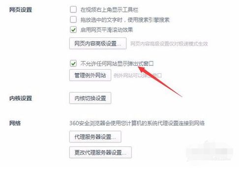 2、通過“高級設(shè)置”勾選:不允許任何彈窗