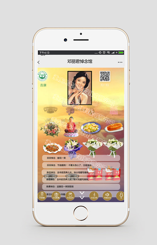 解決異地與現(xiàn)場憑吊親人交互解決方案,主要依托于天蠶公司的在線憑吊系統(tǒng),它成功的解決了異地與現(xiàn)場親人在同時表達自已哀思訴求。在線憑吊系統(tǒng)的功能有創(chuàng)建虛擬悼念廳、捆綁實體悼念廳、創(chuàng)建虛擬商品、創(chuàng)建實體商品與服務(如:代憑吊、代送帛金、獻花圈等)、在線支付、服務辦結、微信公眾號設置等。
