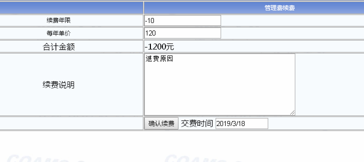 在續(xù)費年限前面填寫“減號”在寫明多少年,以及每年單價。在點擊“確認續(xù)費”。