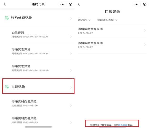 申訴路徑:攔截記錄底部點(diǎn)擊“聯(lián)系客服”發(fā)起申訴