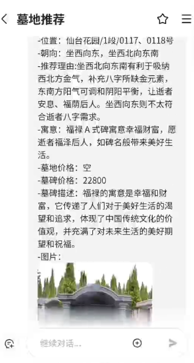 經(jīng)過(guò)天蠶公司的多日的研發(fā)的 公墓管理系統(tǒng),根據(jù)易經(jīng)風(fēng)水學(xué)說(shuō),重慶軟件開發(fā)公司 通過(guò)對(duì)逝者的生名生辰八字分析,結(jié)合陵園系統(tǒng)的待墓位情況,判斷出適合逝者適合的墓位,并能匹配出陵園園區(qū)待售墓位給家屬,家屬可以根據(jù)匹配的結(jié)果,可以了解到該墓位的朝向、墓位價(jià)格、碑型、碑圖、寓意等等。詳細(xì)咨詢天蠶軟件開發(fā)公司的客服。